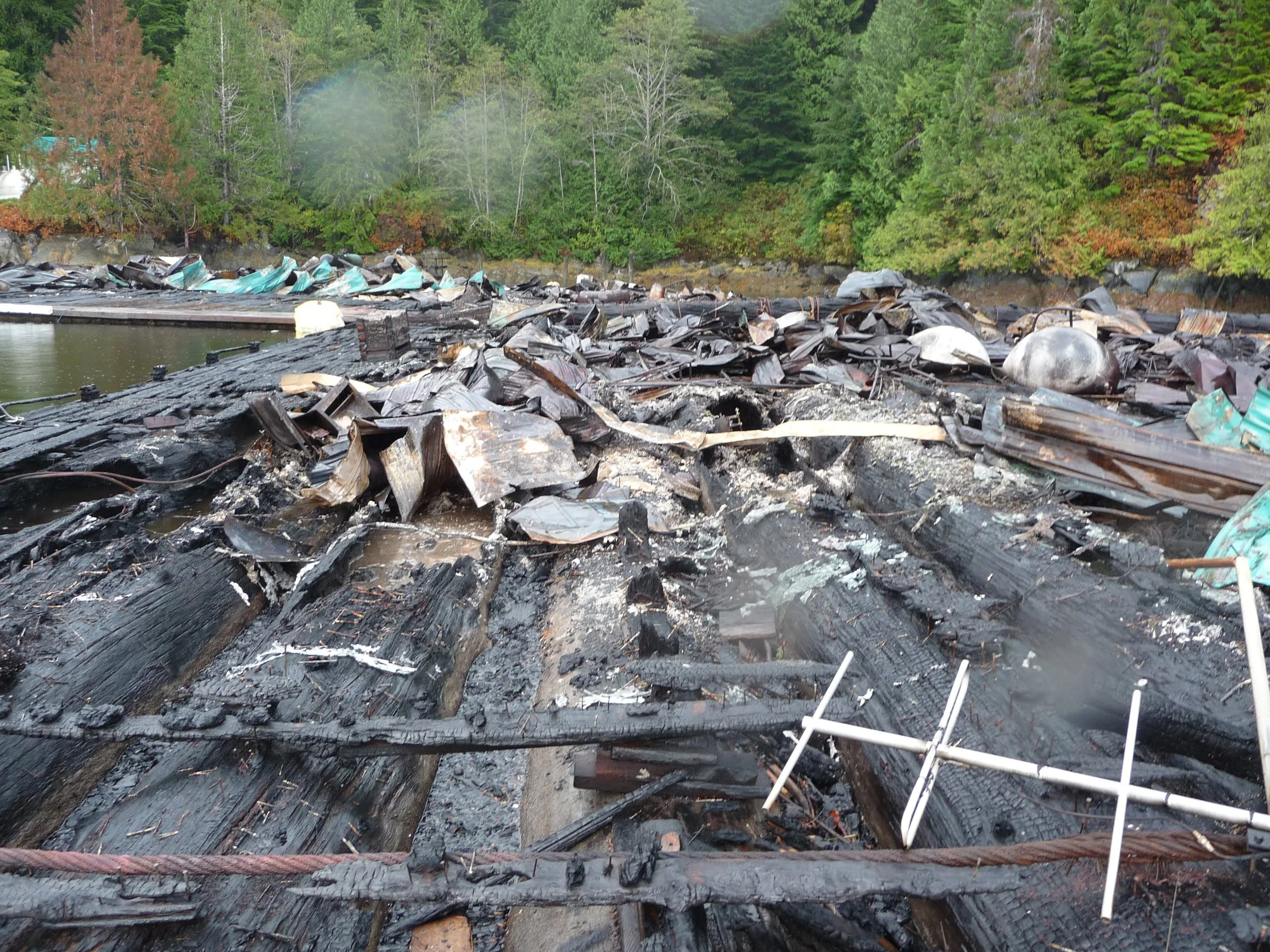 Disaster struck in in 2012 when catastrophic fire consumed the lodge in a 4-hour burst of flame. Thankfully no one was injured but the lodge was completely destroyed. All that remained was the logs that were still floating in the ocean with the top-most logs being charred from the fire. Knight Inlet Lodge was rebuilt and continues to operate to this day but that is a story for another time. The question at the time was what to do with the logs that had such a profound story behind them. This is when it was decided to tow the logs to Campbell River on Vancouver Island and move them to dry land for the first time since they were returned to the Sawchucks in 1945.
